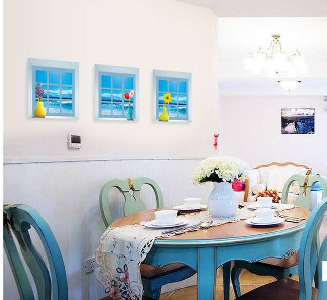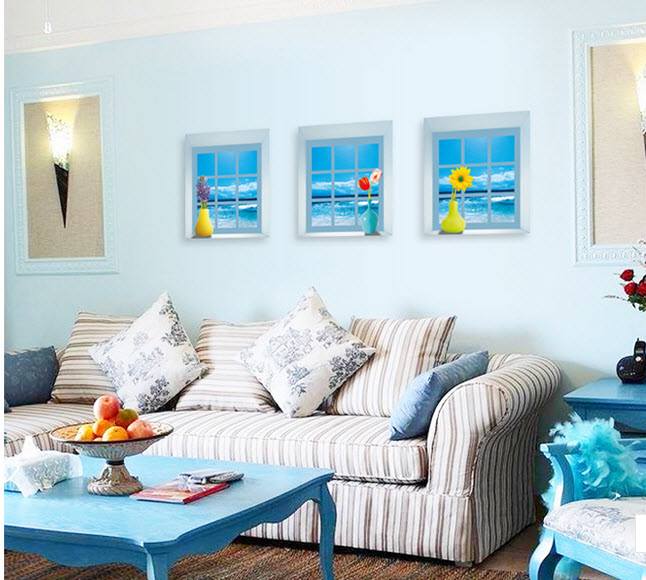 Bộ 3 tranh phong thủy cửa sổ biển với hình ảnh thiên nhiên, hoa cỏ giúp không gian căn nhà bạn thêm phần xinh xắn và đáng yêu.