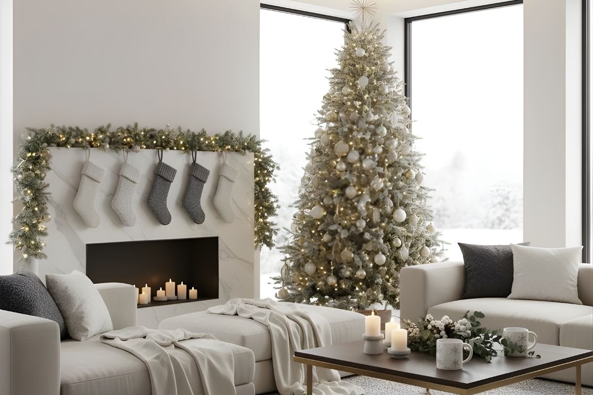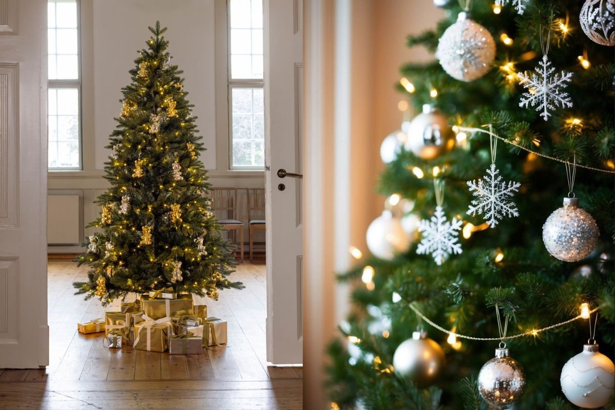 Tuỳ vào phong cách chủ đạo của không gian nhà bạn, nếu theo tông sáng như be, trắng, kem,.. thì cây thông Noel màu xanh cổ điển hoặc trắng tuyết sẽ làm nổi bật hơn.