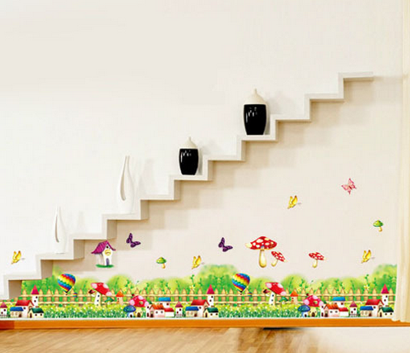 Decal dán tường Chân tường nấm với hình ảnh thiên nhiên, hoa cỏ giúp không gian căn nhà bạn thêm phần xinh xắn và đáng yêu.