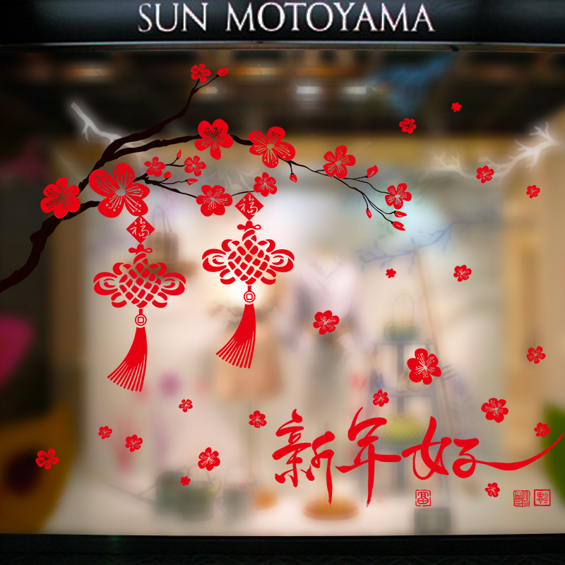Decal cành đào đỏ và chữ thư pháp 2 giúp không gian nhà bạn tràn ngập không khí Tết vui tươi, náo nhiệt.