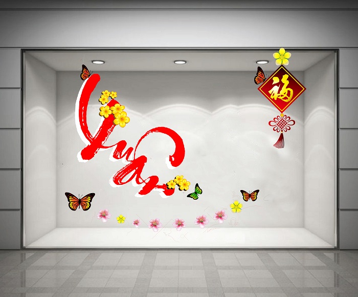 DECAL DÁN TƯỜNG CHÀO XUÂN 2 nền trắng cán lụa cao cấp