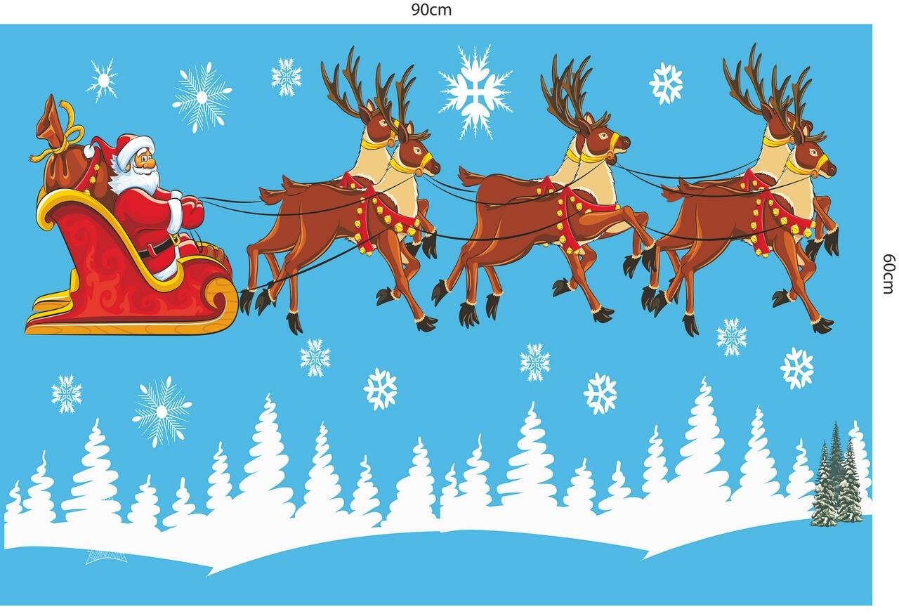 Kích thước đóng gói 1 tấm ( Dây treo vớ Noel 60x90cm, Cây thông Noel xanh 60x90cm, Ông già Noel và đàn tuần lộc 02 60x90cm)