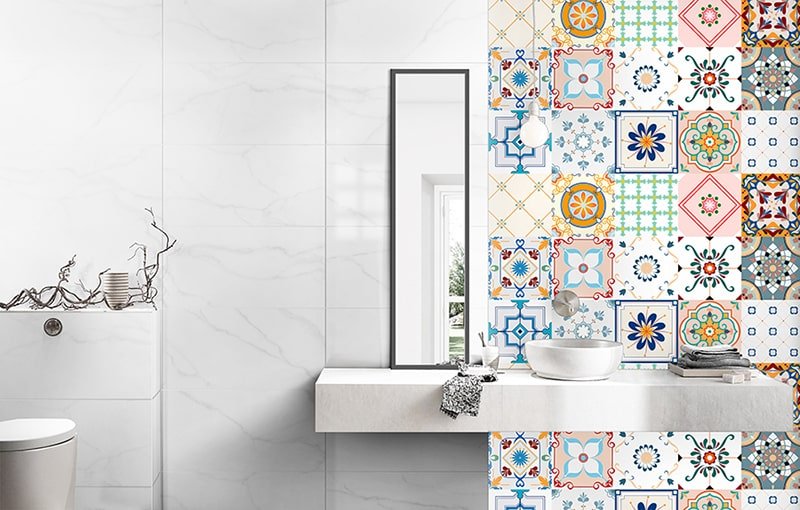 Decal gạch bông đa sắc với họa tiết xinh xắn, tạo vẻ đẹp sinh động, cuốn hút cho không gian nhà ở.