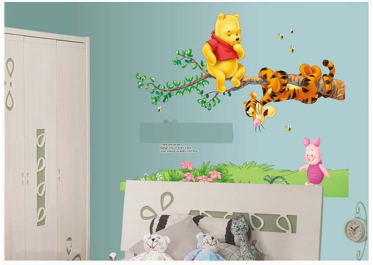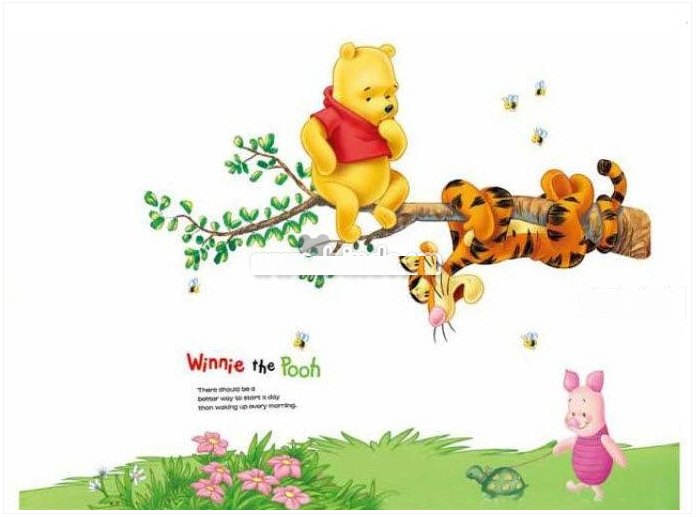 Decal dán tường gấu leo cây với họa tiết decal trang trí gấu pooh chơi đùa cùng các bạn trong khu rừng của mình