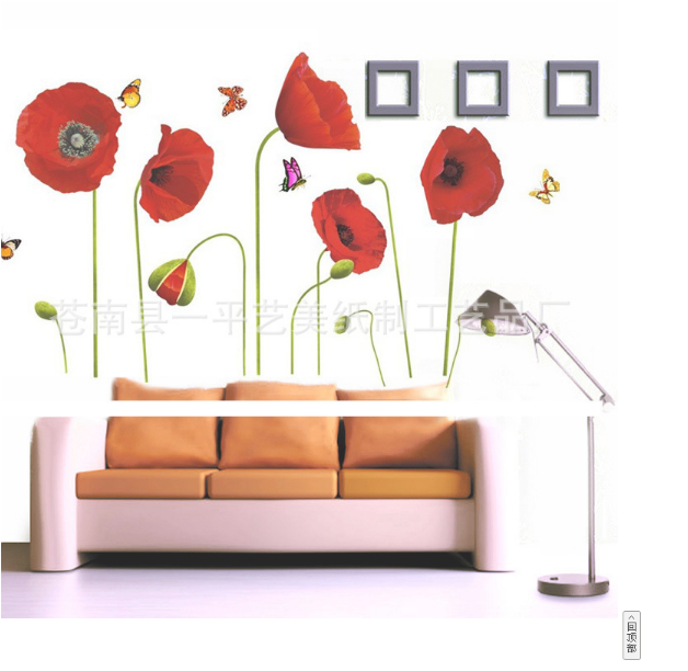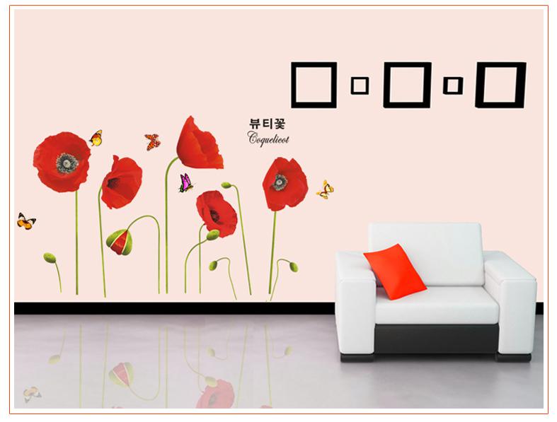 Decal dán tường Hoa đỏ 1 với hình ảnh thiên nhiên, hoa cỏ giúp không gian căn nhà bạn thêm phần xinh xắn và đáng yêu.
