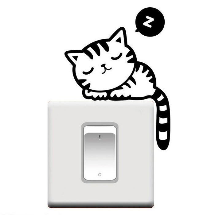 Decal dán tường Ổ điện mèo lười với hình ảnh chú mèo tinh nghịch giúp không gian nhà bạn thêm phần thú vị, đáng yêu.