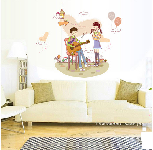 Decal dán tường Tình nhân 4 với hình ảnh đôi tình nhân đáng yêu giúp không gian căn nhà bạn thêm phần xinh xắn và lãng mạn