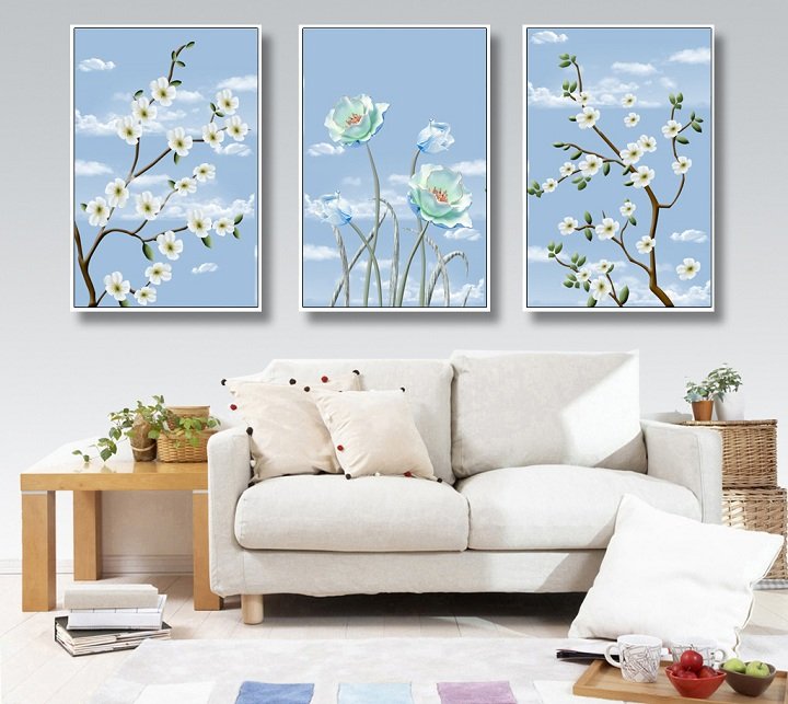 - Tranh Canvas : Tranh được in trên vải Canvas nhập khẩu, chất lượng cao giúp hình ảnh sống động, trung thực. Bề mặt tranh được căng và cố định trên khung gỗ thông, mang lại khả năng chống mối mọt cao. Điểm nổi bật của chất liệu là khối lượng nhẹ, thích hợp treo tường thạch cao, vách tạm